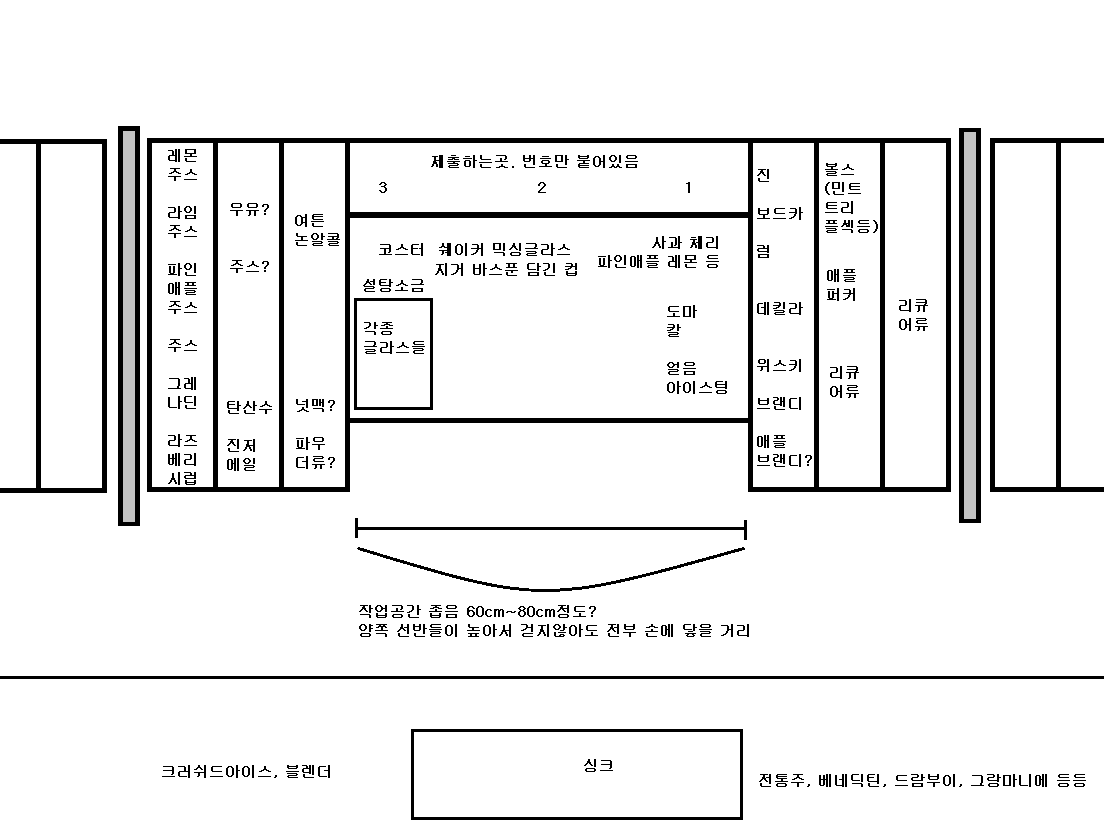 - 실전훈련을 하면 아는것도 기법이나 글라스가 틀리기 너무쉽다. 물로 연습해보자 (맨해튼과 고창을 자꾸 나는 쉐이크로 만들었다.)