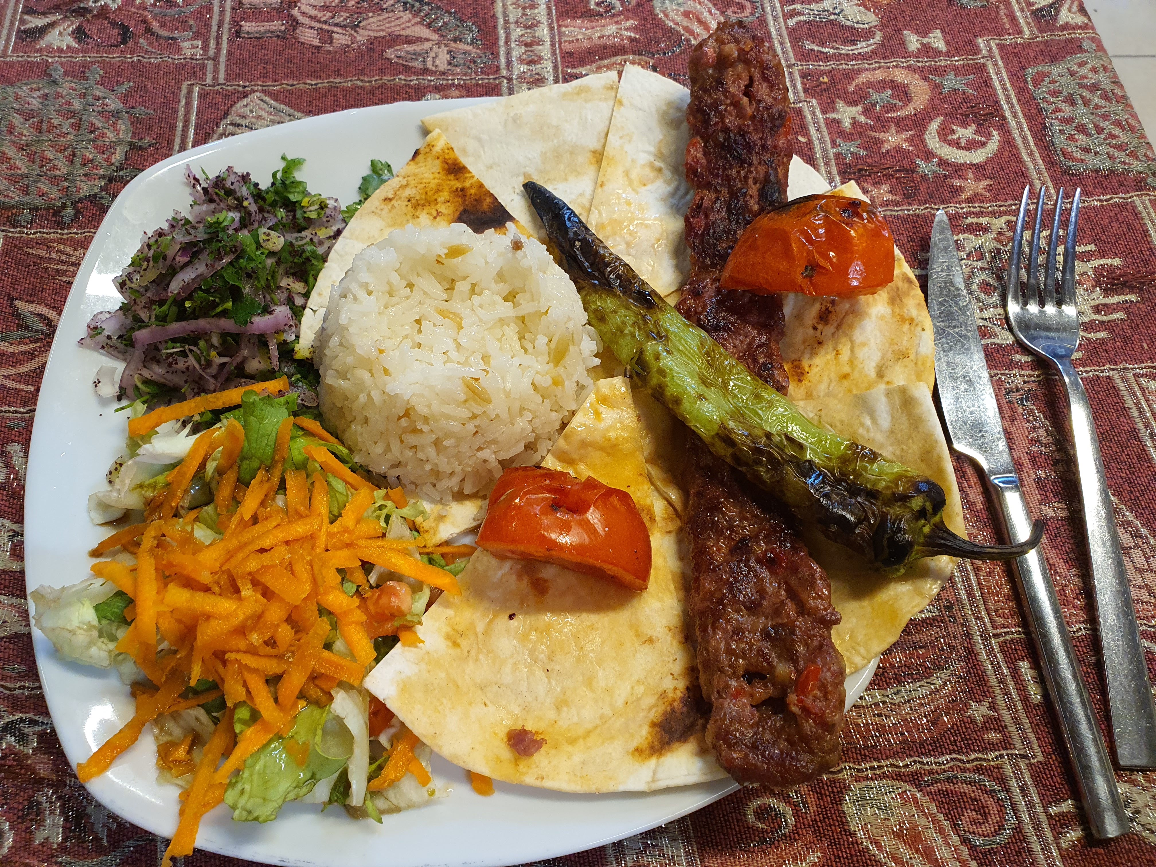 저녁밥 괴레메 한 레스토랑. 아다나케밥 190T 처칠 25T(레몬즙이 들어간 소금 뿌린 탄산 음료). 처칠은 다시 안 마실것 같지만 케밥 맛있었다!